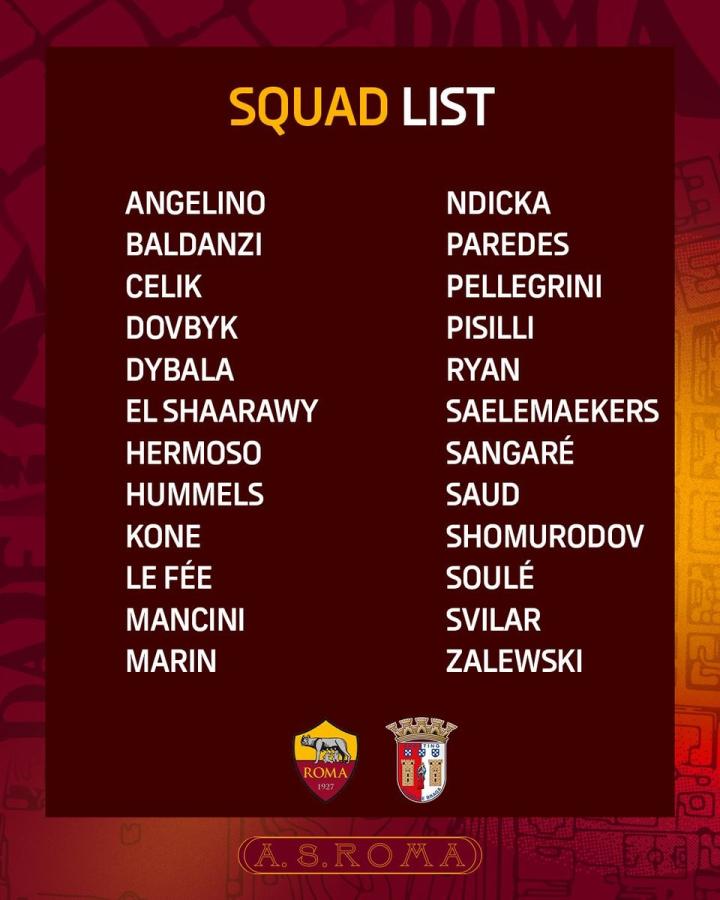 中场方面,巴尔丹齐、夸迪奥-科内、勒费埃等中场球员入选了大名单。他们将发挥关键作用,组织进攻和防守,助力罗马取得比赛胜利。前锋线上,多夫比克、迪巴拉、沙拉维等犀利射手也在名单之中,他们将负责攻破对手球门,为球队争取进球。