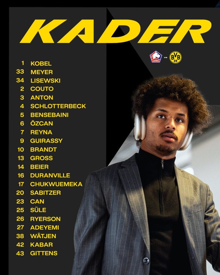 多特蒙德此次客场挑战里尔,全队派出了强大的阵容。门将位置由科贝尔担任,而后防线上扬-科托、安东等球员悉数在列。中场方面,厄兹詹、雷纳、布兰特以及埃姆雷-詹等球星也都在名单之中。前锋线上则有吉拉西、拜尔等进攻火力强劲的球员。整个大名单显示出了多特蒙德对于这场欧冠比赛的重视,他们希望凭借着实力取得一场胜利,晋级下一轮。